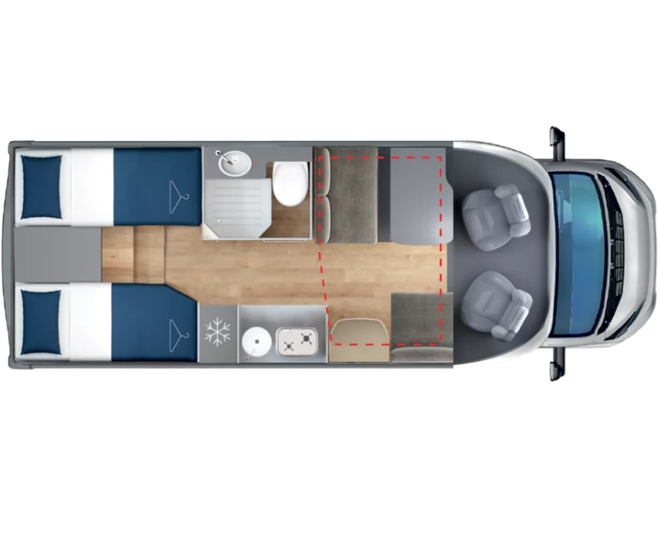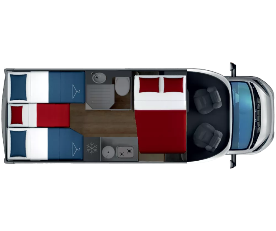 Tento moderný karavan ponúka všetko, čo potrebujete pre dokonalú dovolenku, plnohodnotnú kuchyňu, kúpeľňu so sprchou, priestranné spanie a útulnú obývaciu časť. Vďaka automatickej prevodovke je jazda jednoduchá a pohodlná aj pre menej skúsených vodičov.