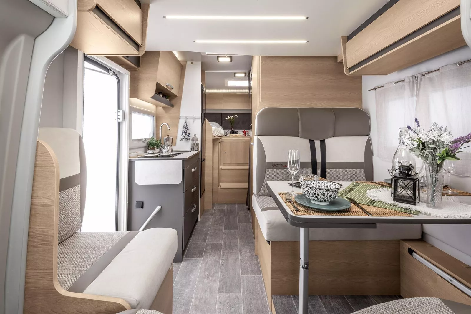 Moderný interiér ponúka priestor pre 4 až 5 osôb. Vysoký komfort zabezpečuje bohatá výbava a praktické riešenia pre dlhšie cesty aj pohodové víkendy.